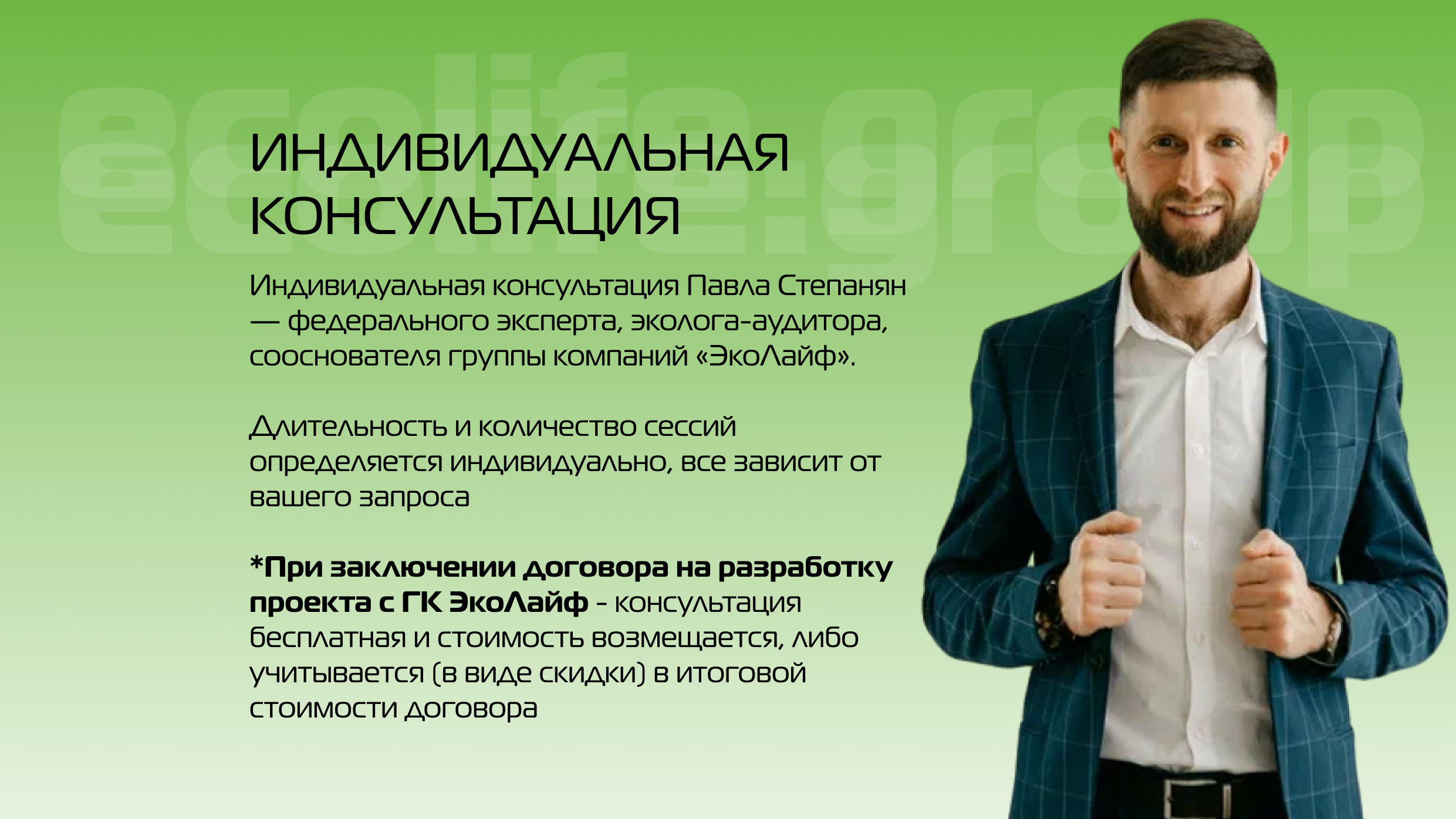 Индивидуальная консультация Павла Степанян — федерального эксперта, эколога-аудитора, сооснователя группы компаний «ЭкоЛайф».